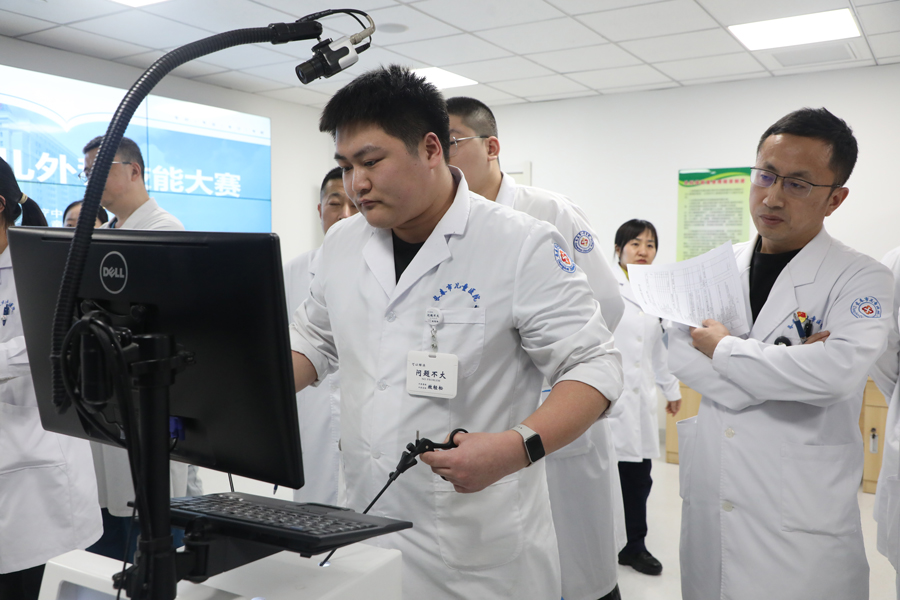 为进一步提升住院医师规范化培训质量,强化儿外科专业住培医师腹腔镜微创操作技能,4月8日,吉林省儿童医疗中心·长春市儿童医院·北京儿童医院集团医院举办了住院医师规范化培训儿外科专业腹腔镜模拟操作技能大赛,儿外科专业基地住培学员参加比赛。北京儿童医院常驻专家、长春市儿童医院副院长王伟担任大赛主考官,副院长雷明现场观摩比赛,为参赛选手加油打气。