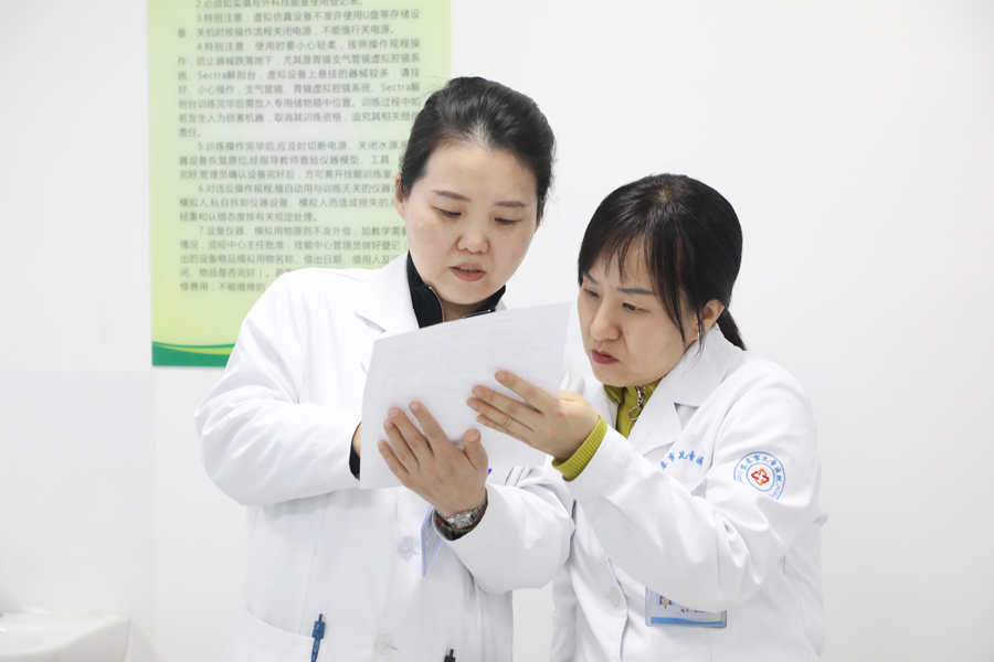 在等待成绩的间隙,王伟副院长带领监考老师现场演示操作手法,逐一讲解技术要领,学员们认真观摩,受益匪浅。