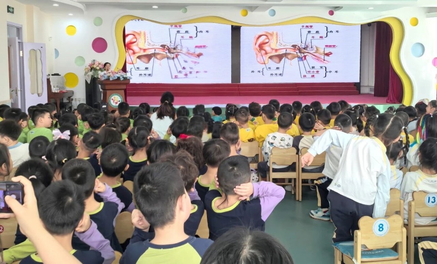 活动现场,专家志愿者摒弃枯燥的理论讲解,用色彩鲜艳、情节有趣的动画短片,将耳朵的构造、日常护耳小知识娓娓道来。在互动提问环节,孩子们更是踊跃举手,稚嫩的童声此起彼伏,专家志愿者温柔又耐心地解答每一个问题,让课堂氛围愈发热烈。