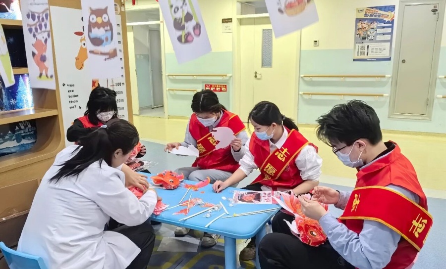 游戏过后,志愿者们将亲手制作的彩色小鱼灯笼送到每一位小朋友手中,红彤彤的灯笼、金灿灿的鱼鳍,在孩子们手中轻轻晃动,温暖的灯光映着孩子们灿烂的笑脸。这份别样的节日陪伴,让住院的孩子们在病房里也感受到了元宵佳节的团圆与温暖,用温柔的心意缓解了孩子们就医的焦虑。