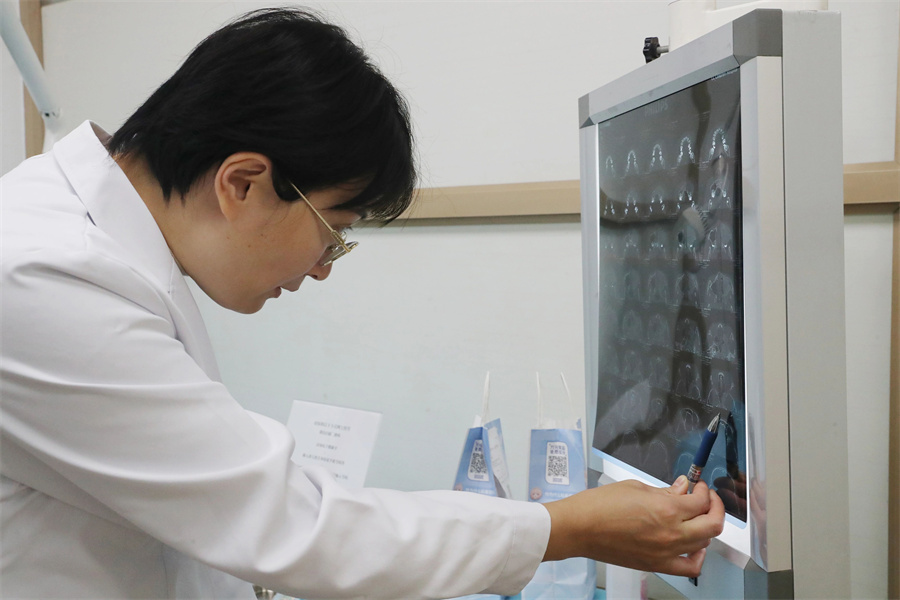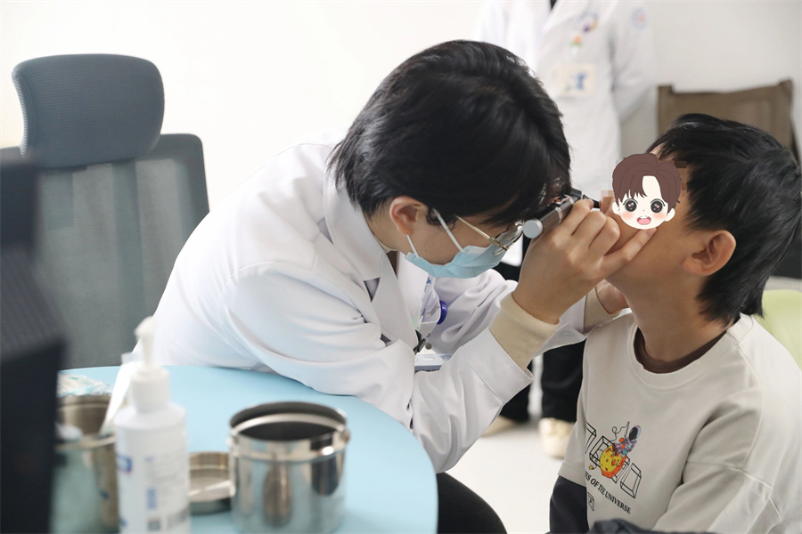 杨小健教授与长春市儿童医院耳鼻喉科副主任李萍一同坐诊,耐心细致地为来自吉林省内的患儿看诊。诊室里既有熟悉的老面孔,也有初次见面的新患者。