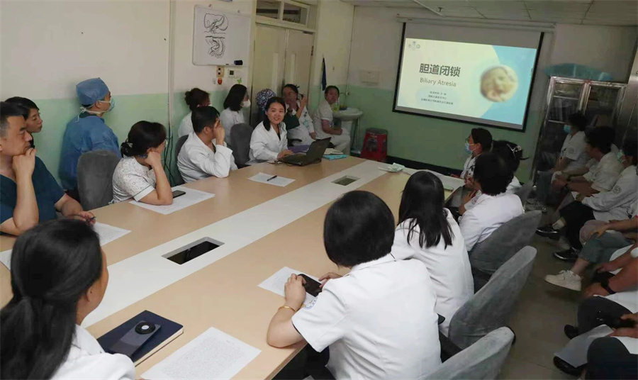 面对患儿复杂病情,医院高度重视。9月15日,北京儿童医院常驻专家、长春市儿童医院副院长王伟组织一场多学科联合会诊。新生儿科、普外科、麻醉科、手术室专家从各自专业角度深入分析患儿情况,一致认为,小新很可能患有胆道闭锁。胆道闭锁是婴儿早期的一种严重肝胆系统疾病,发病率约万分之一。由于患儿胆管闭锁,胆汁无法流出,淤积在肝脏内,若不及时干预,将迅速导致肝纤维化、肝功能衰竭,甚至死亡。“通俗来说,就是运输胆汁的‘道路’堵了,必须及时打通,否则后果不堪设想。”王伟副院长说。